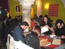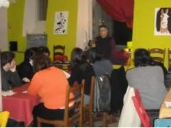 Ci siamo ritrovati li, come usava in quelle osterie del tempo che fu, quando ci si incontrava non solo per bere o per mangiare, ma per dare nutrimento alle idee, per sobillare il pensiero stantio. Per una sera almeno, tra amici. Così e stato al Vicolo Biobar Creperie di Salò venerdì 26 marzo 2010. Complice la cordialità infinita dei gestori tutti che, per dare aria al cervello, si sono inventati, accanto ad un menù biologico che soddisfa appieno il palato, una serie di portate culturali niente male, compreso questa serie d'incontri letterari di fine inverno che hanno animato il locale ogni venerdì sera.